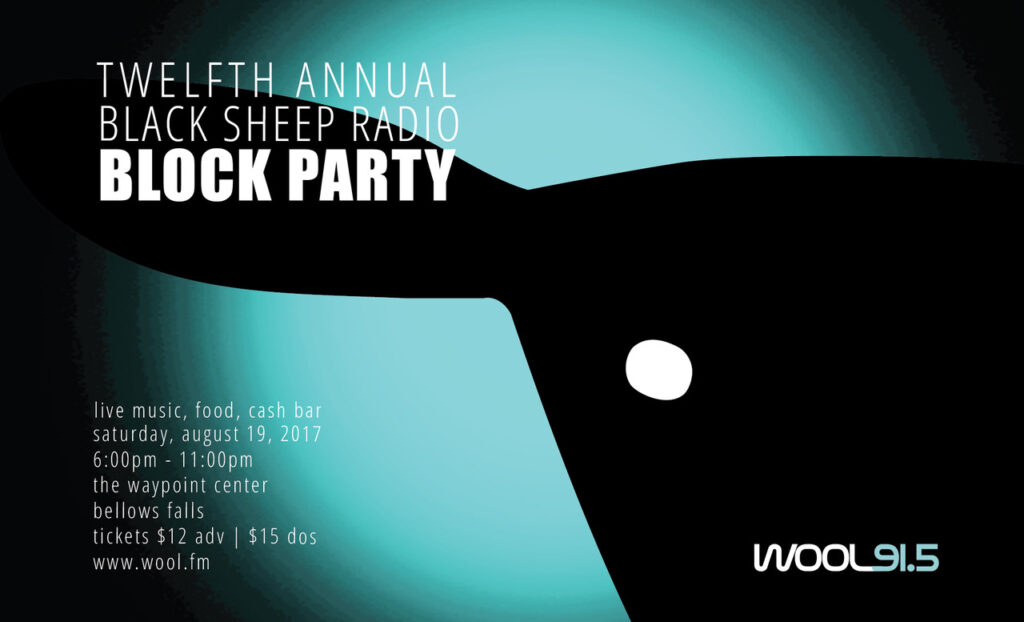 12th Annual Black Sheep Radio Block Party. Live music, food, cash bar. Saturday, August 19, from 6 to 11 PM. The Waypoint Center, Bellows Falls. $12 in advance, $15 at the gate. Featuring The Ben Carr Music Project, The Bondville Boys, Luminous Crush, Michael Schlenoff, and Bayou X.