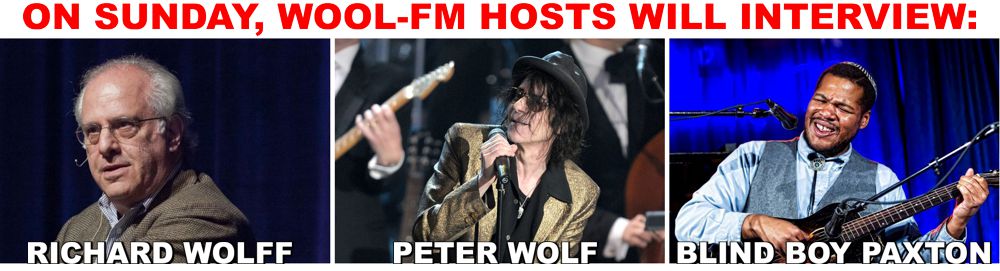 Three terrific interviews on WOOL-FM this Sunday! Not bad for a little indie community station.